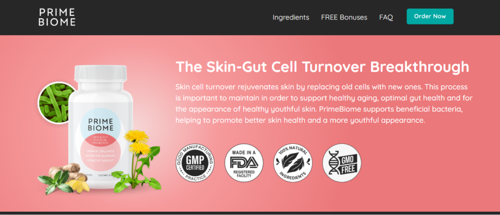 PrimeBiome is marketed as a “skin-gut cell turnover breakthrough” formula. The core idea is that by supporting beneficial gut bacteria and optimizing the skin’s cell renewal process, the product can help you attain healthier digestion, more youthful-looking skin, and even assist in weight balance. The presentation emphasizes that this is delivered through probiotic gummies containing a “proprietary blend” of ingredients.